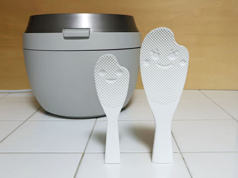 また、自立する構造を採用しており、炊飯器の周囲や食卓にそのまま立てて置ける。