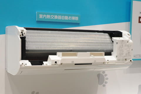 室内機の幅800mm以下のコンパクトサイズながら、高い省エネ性能や、活動量と日差しの変化を見分けて快適かつ省エネな運転を行なう「eco運転」、室内熱交換器の自動掃除「凍結洗浄」など3つの自動掃除機能でムダな電気代がかからないようにする。