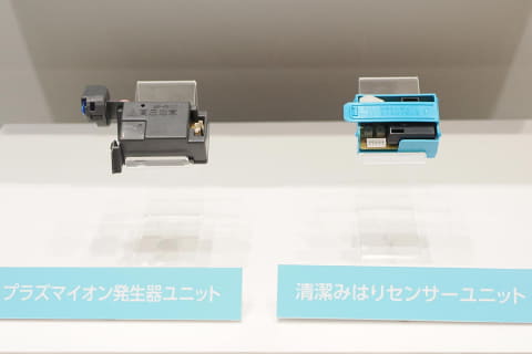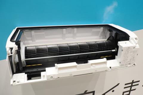 プラズマイオンでソファやカーテンなどのニオイ抑制を図るプラズマ空清や、エアコン内部を清潔に保つ「清潔みはりセンサー」、ファンの自動掃除「ファンお掃除ロボ」なども搭載。リモコンは暗い場所でも使いやすいバックライト液晶付き。