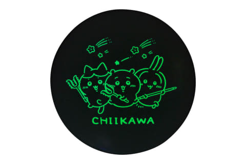 ちいかわ、ハチワレ、うさぎが、さすまたや討伐棒を持ったイラストがピンク色で描かれたシーリングライト。カバーに描かれたイラスト部分は蓄光仕様になっており、消灯時にほのかに蛍光グリーンに発光する。蓄光は時間の経過とともに徐々に弱まり、自然な入眠を妨げないよう配慮している。すぐに部屋が真っ暗にならないため、暗がりが苦手な子供でも安心して使用できるとする。