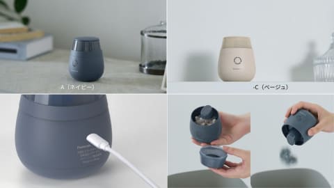 本体サイズは約8×8×9.5cm(幅×奥行き×高さ)、重量は約174g。充電用USBケーブル(Type-A to C)が付属する。カラーはネイビーとベージュの2色。