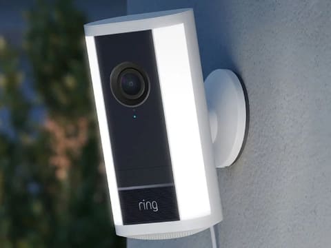 「Ring Spotlight Cam Pro」は、明るさ600lmのセンサーライトを搭載する防犯カメラ。IP65の防塵防沫性を備えるほか、-20〜50℃の環境でも動作。