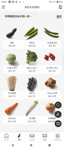 登録された食材情報をもとに、利用期限の目安を算出し、期限が近い食材を優先的に使えるレシピを提案するほか、手持ちの同社調理家電と組み合わせて最適な調理方法を案内する。必要な材料は買い物リストに一括登録でき、冷蔵庫AIカメラなどを利用していれば在庫の有無も確認できるため、効率的な買い物が可能になる。
