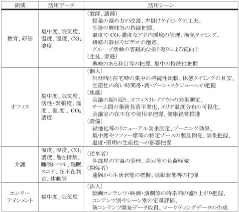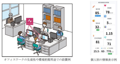 これらの取得データを活用し、例えば、従業員の集中度合いを出社時と在宅時で比較し、よりよい働き方となる出社頻度を提案したり、生産性の高い時間帯や座席による違いなどを特定したりすることで、最適なオフィス環境を構築できるという。
