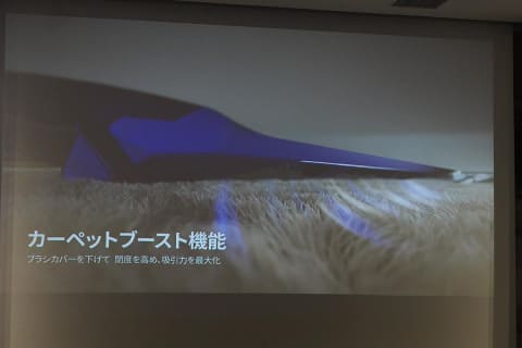 最大22,000Paの吸引力でゴミを強力に取り除く。可動式のブラシカバーを備え、カーペットなどに密着して吸引することで、空気の漏れを防ぎ効率的に清掃。カーペットの繊維の奥まで強力に吸えるようにした。