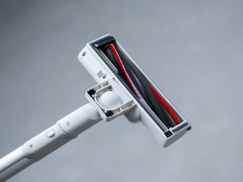 自走式パワーブラシを搭載。ヘッド幅は約21cm。ベッドやソファ下などの狭い場所もラクに掃除ができるとする。さらに家具下などの暗い場所を照らすLEDライトを搭載した。