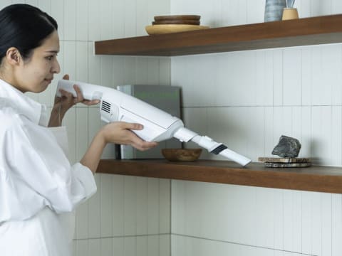 アタッチメントを付け替えればハンディクリーナーとしても使え、棚や机、車内の掃除など多用途に活躍する。