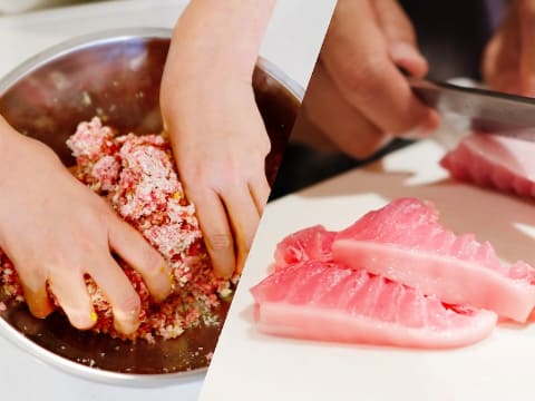 食材への負担が少ない「やさしさ解凍」は、低出力のON/OFFを繰り返すことで、じっくりあたためながら解凍。冷凍したひき肉や刺身など、加減が難しい食材も熱を通しすぎず上手に解凍できる。