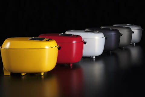 外観は、黒や白などの炊飯器業界における一般的なカラーではなく、手吹き技術を用い、ラグジュアリーな質感を追求した「Material Color Series(マテリアルカラーシリーズ)」と食卓に新たな風を吹き込む鮮やかな「Bright Color Series(ブライトカラーシリーズ)」の計6色展開。