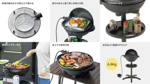 コンセントにつなぎ、スイッチを入れるだけでバーベキューが楽しめる電気式グリル。炭火を使用しないため手軽で、煙が少ない点が特徴。ベランダなどの屋外だけでなく、屋内でも使用できる。