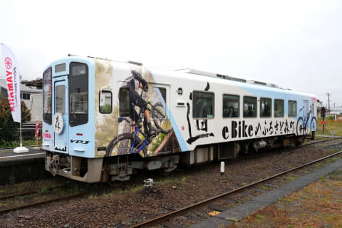 今回の副駅名の命名を記念し、森町町長の太田氏、天竜浜名湖鉄道・代表取締役社長の松井氏の参加がする除幕式および出発式が執り行なわれ、フルラッピング列車「eBikeのふるさと森町」号も運行を開始する。