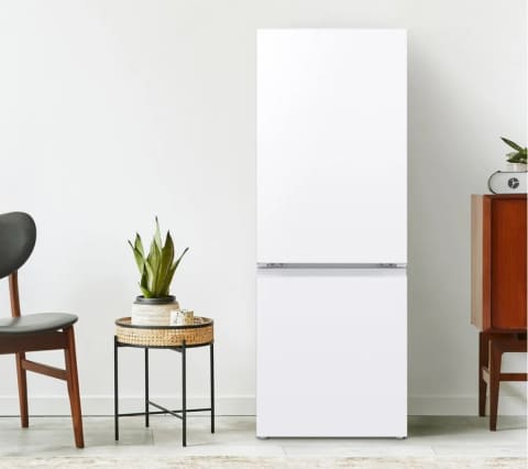 同社独自の「つけかえどっちもドア」を搭載した2ドア冷凍冷蔵庫。設置場所にあわせてドアの右開き/左開きを選択可能。特別な工具を使うことなく、ドアを支える軸を付け替えることで簡単に変更できるため、部屋の模様替えや引っ越しなどで設置場所が変わった際に役立つ。
