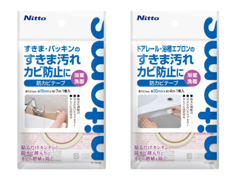 ニトムズは、浴室や洗面所などの水回りに貼るだけで汚れとカビを防止する「浴室・洗面用 防カビテープ」を、11月25日に発売する。幅15mm×長さ7m、幅30mm×長さ4mの2種類をラインナップ。価格はオープン。市場想定価格は順に660円前後、770円前後。