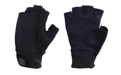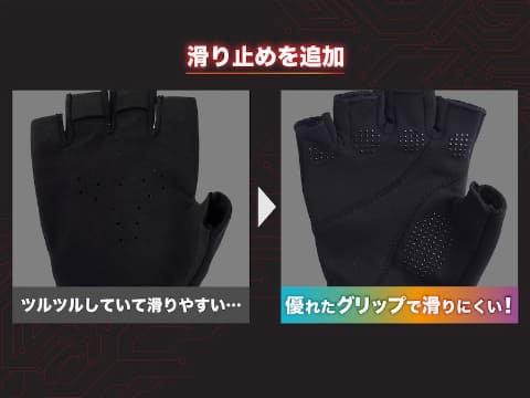 手袋はストレッチ素材で、指先部分を出せるフィンガーレス。スマートフォンなどの操作も、着けたままで行なえるうえ、ゲームやパソコン作業など、細かい操作にも邪魔にならない。