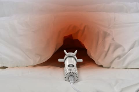1分間に約11万回転する高速モーターを搭載し、ふとんに差し込むだけで湿気を飛ばし乾燥させ、ふとんを素早く温める。