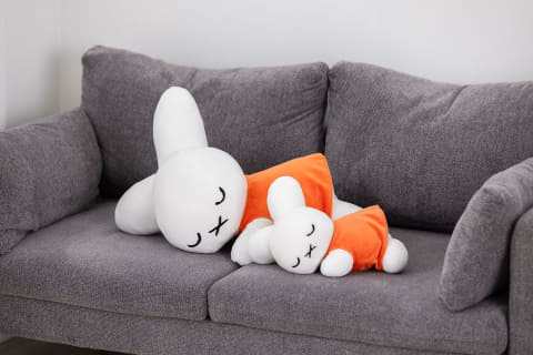 ミッフィー誕生70周年という特別なアニバーサリーイヤーにあわせ、70周年限定であるナインチェデザインを用いたぬいぐるみ。すやすやと目を閉じてミッフィーが寝そべるリラックスシルエットに仕上げた。