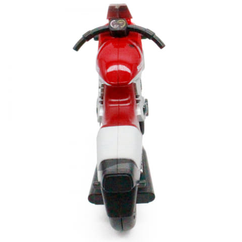 前輪がピザカッターになっており、未使用時は飾っておけるタイヤスタンドパーツが付属する。