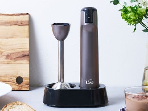 ブレンダーの本体サイズは、65×380mm(直径×高さ)。充電台に収納した状態でのサイズは、165×95×240mm(幅×奥行き×高さ)。定格使用時間は1分(1分使用ごとに15分以上休止)。