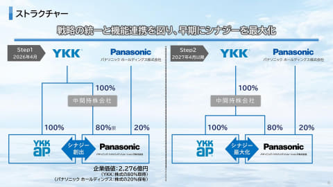 新設住宅に強いYKK APとリフォーム市場に強いパナソニックが連携により、販売ネットワークも強化。営業ルートにおいても重複は少ないことが、提携に至った要因としている。また、IoT等のパナソニックのソリューションをYKK AP側に活かすといった連携も進めていく。海外展開においても連携を進めていく。提携により2035年度の売上高1.5兆円を目指す。