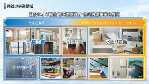 YKK APは、窓・開口部に圧倒的な強みを持ち、PHSは水回り設備を中心に、外回り、住宅設備機器などを多数ラインアップしている。「重複分野は非常に少ない」としており、「重複分野でも木質建材はパナソニックが強く、樹脂窓は市場が伸びているため、パナソニック側のエクセルシャノンの商材も使いたい」(YKK AP)と説明。両社の役割分担はしていくが、人員整理は行なわず、両ブランドも維持していく方針。