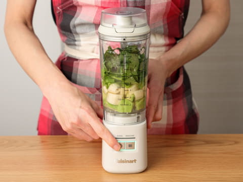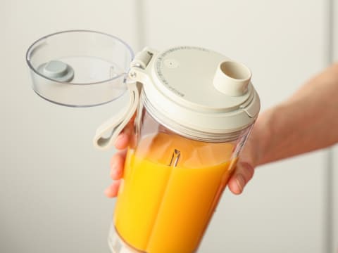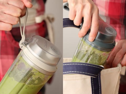 飲み口付きのブレンダーカップを採用しており、本体とブレンダーカップはワンタッチで脱着可能。タンブラーとしても使え、出来上がりをそのまま飲める。