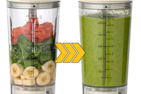 最大容量530mlのコンパクトなコードレスブレンダー。パワフルな6枚刃を搭載し、冷凍フルーツや氷を使ったスムージーもしっかり砕くことができる。