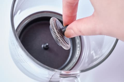 におい移りしにくく、洗いやすい取り外し可能なガラスカップを採用。広口のストレーナーは茶葉が入れやすく、粗めのメッシュが旨味をしっかり抽出するという。