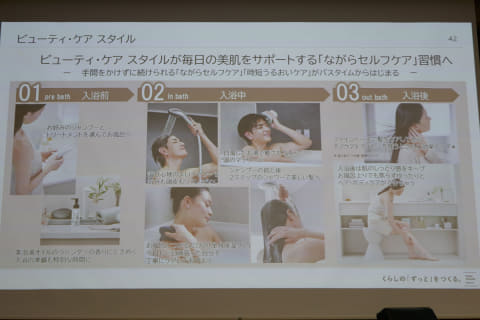 また、ショールームでは新たに「お風呂ソムリエ」によるバスルームプランの提案を開始。従来は価格や色柄、清掃性を軸に選ばれることが多かったが、ヒアリングを通じて理想の暮らしや入浴スタイルに合ったバスルームを提案していく。