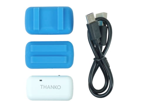 本体サイズは40×21×15mm(幅×奥行き×高さ)。重量は20g。記録容量は約1年分。シリコンカバー(2種)、USB Type-Cケーブル(250mm)が付属する。