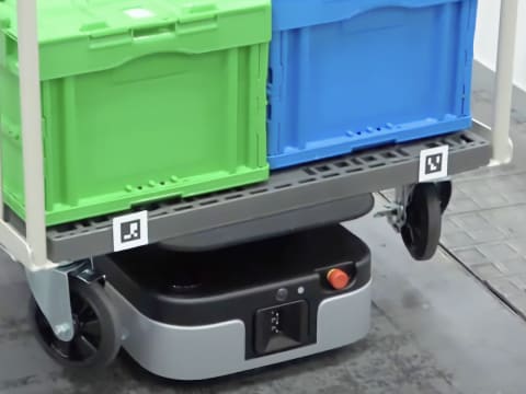 小型ロボットで100kgの荷物を運べるカチャカEvo 台車ごと乗る