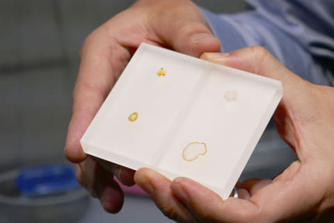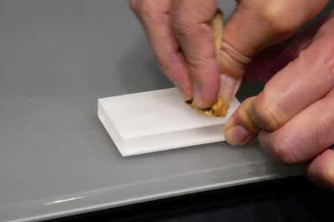 半透明の樹脂ということで、調味料などをこぼしたらシミになってしまうのではないかと不安になるが、しょうゆやラー油を垂らしてひと晩おいたものでも色移りなどはまったくなく、サッと拭き取るだけできれいになっていた。また、傷が付いてしまった場合でも、一般的なスポンジの不織布面(硬い面)でこすってカウンター表面を薄く削ることで、元通りのなめらかさが復活する。