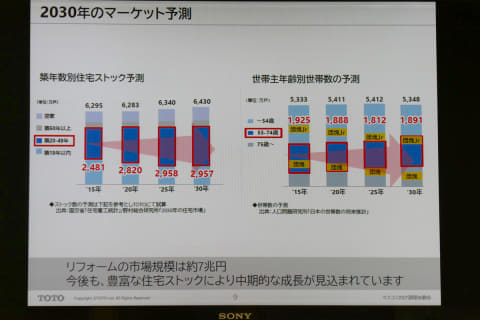 TOTOの国内住宅設備事業における売上高で約7割を占めるのがリモデル(リフォーム)事業だ。いくつかのデータをもとにTOTOが立てた予測では今後、築20~49年の住宅が増えていくことなどから、リフォームの需要は引き続き堅調に推移するとみている。