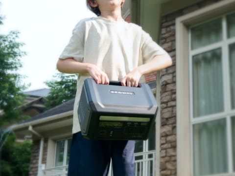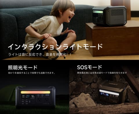 リン酸鉄リチウムイオンバッテリーを搭載した容量512Whのポータブル電源。耐衝撃設計の防水仕様で、重さ約7.2kgと持ち運びやすいためアウトドアや非常時も使用できる。