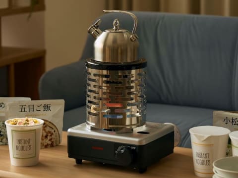 一方、「ストーブユニット」を装着すれば、赤熱部から放射される遠赤外線により暖房として使用可能。ストーブユニットの天板にやかんなどの調理器具を載せることができ、暖を取りながら加湿や料理の保温ができるという。