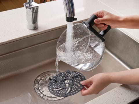 調理中の様子が見えるガラストレイを採用したエアフライヤー。熱風を循環させて揚げ物やグリル料理を手軽に作ることが可能。買ってきた惣菜のあたためも、余計な油をカットできるためヘルシーに仕上がるという。
