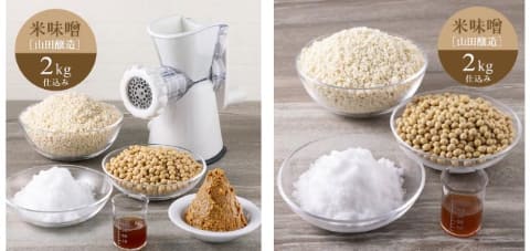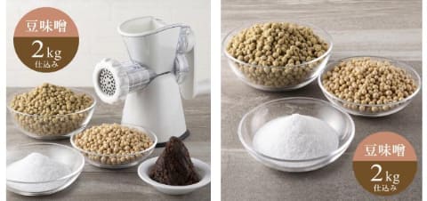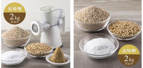 なお、ミンサーが付属しない味噌材料だけのセットも3,980円~11,880円(単品2kg~3種食べ比べ6kg)で用意する。