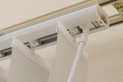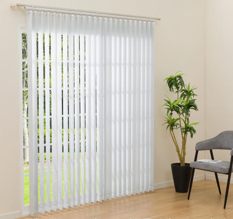 縦型ブラインドとも呼ばれるバーチカルブラインドは、縦に長い羽(ルーバー)を吊り下げた形のブラインド。窓周りをすっきりさせ、部屋を広く見せる効果がある。