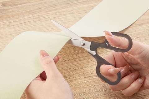 既存のカーテンレールにも取り付けが可能で、取り付けたい場所に合わせて、羽の高さを自由にはさみでカットできるのが特徴。同梱する専用ガイドを使って、高さ調整も簡単なため、持ち帰ってすぐに使える。開閉や羽の回転を行なうバトンは、レールの左右どちら側でも取り付けられる。