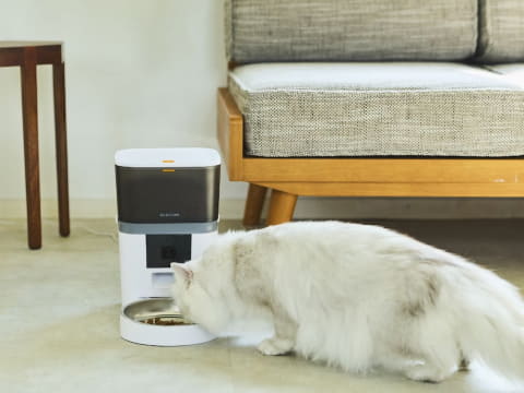 エレコムは、スマホアプリからリアルタイムで愛犬・愛猫の様子を見守れるカメラ付き自動給餌器を、12月中旬に発売した。ラインナップは、容量約4Lの「PET-AF01CAWH」と、約2Lの「PET-AF05CAWH」の2機種。直販価格は順に、17,980円、16,980円。