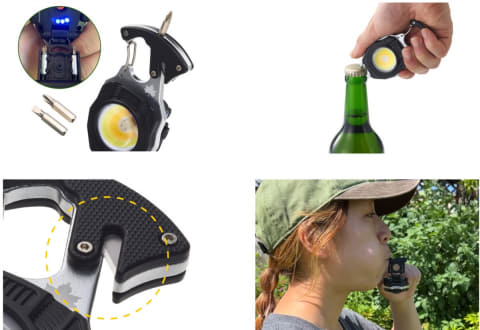 ドライバーは、マイナス/プラスの2種類。このほか栓抜きやカッター、ホイッスルも搭載しており、アウトドアシーンでの細かな不便をまとめて解消できるという。