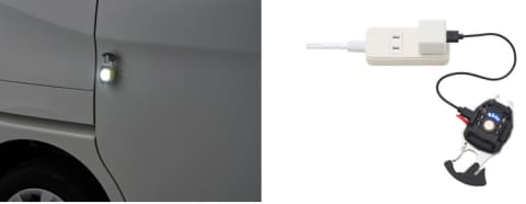 底部にマグネットが付いており、車のボディなど金属面にしっかり固定できるため、夜間作業や災害時にも自由に両手が使える点も特徴。USB Type-Cによる蓄電式で、蓄電時間の目安は約1時間。