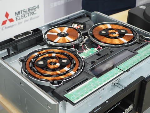 従来のIHでは鍋を加熱する磁力が内側に集まりやすく、鍋の内側と外側とで加熱ムラが生じることがあった。新製品では、この加熱ムラの原因となっていた、磁力の分布を的確にコントロールするため、「分割フレームコイル」を搭載。鍋やフライパンの端まで、しっかりと加熱できるようにした。