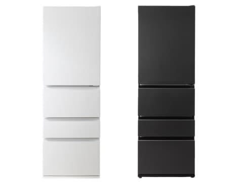 本体サイズは約600×666×1,810mm(幅×奥行き×高さ)。重量は約72kg。定格内容積は371L(冷蔵室204L/野菜室70L/冷凍室97L)。年間消費電力量は353kWh/年。コード長は約1.9m。カラーはホワイト、グレーの2色。