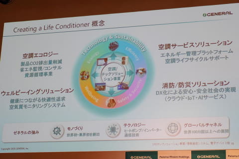 ゼネラルの目指す形としては「Air Conditioner(エアコン)を作ることから、Life Conditionerを創造していきます」と説明。正確には、この言葉は英語の文法として一般的ではないものの「これが世界共通の言葉になるまで、私たちはあきらめずに言い続けていく」との意思を表した。