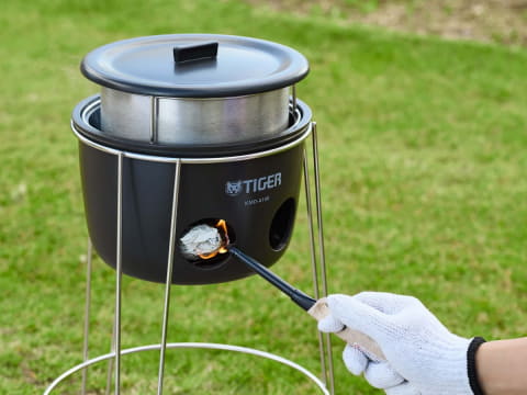 タイガー魔法瓶は、電気やガスを使わずに新聞紙一部でごはんが炊ける「魔法のかまどごはん KMD-A100」のオプション品として、「魔法のかまどごはん専用ハイスタンド KMD-Z10H」と「魔法のかまどごはん専用マルチカバー KMD-Z10M」を2月5日に発売する。価格はどちらも4,900円。1月15日からタイガー公式オンラインストア限定で予約受付を開始した。