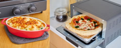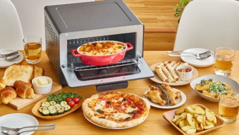 広々とした庫内ながら外観はコンパクトで、キッチンスペースを有効に使える点も特徴。23cmのピザがまるごと入るため、パーティーなどでも活躍する。