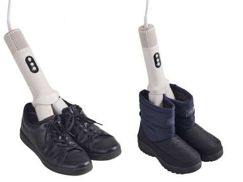 スペーサーを外して靴に差し込めば、靴乾燥ができる。ゲリラ豪雨で濡れた靴や子供の上履きなどを、HOTモード(あたためモード)で速乾できる。