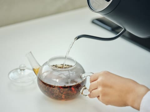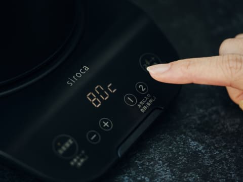 容量0.8Lの電気ケトル。60~100℃の範囲で、温度を1℃単位で設定可能。自分好みの一番おいしい温度で飲み物を楽しめる。