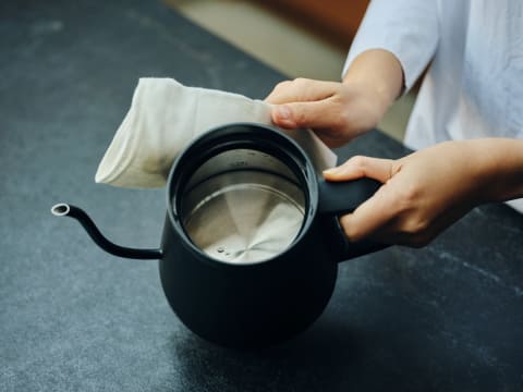 ふたは完全に取り外し可能で手入れも簡単。ケトル本体も広い口径で洗いやすく、清潔に使い続けられるという。