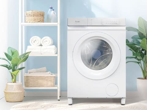 本体サイズは約595×605×895mm(幅×奥行き×高さ)で、重さは約66kg。標準使用水量は洗濯時が80L、洗濯乾燥時が107L。運転音は、洗い時が33dB、乾燥時が43dB、脱水時が54dB。ドア開閉は左開きのみ。